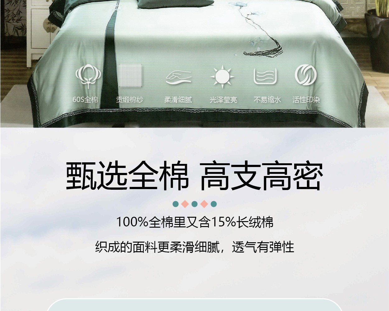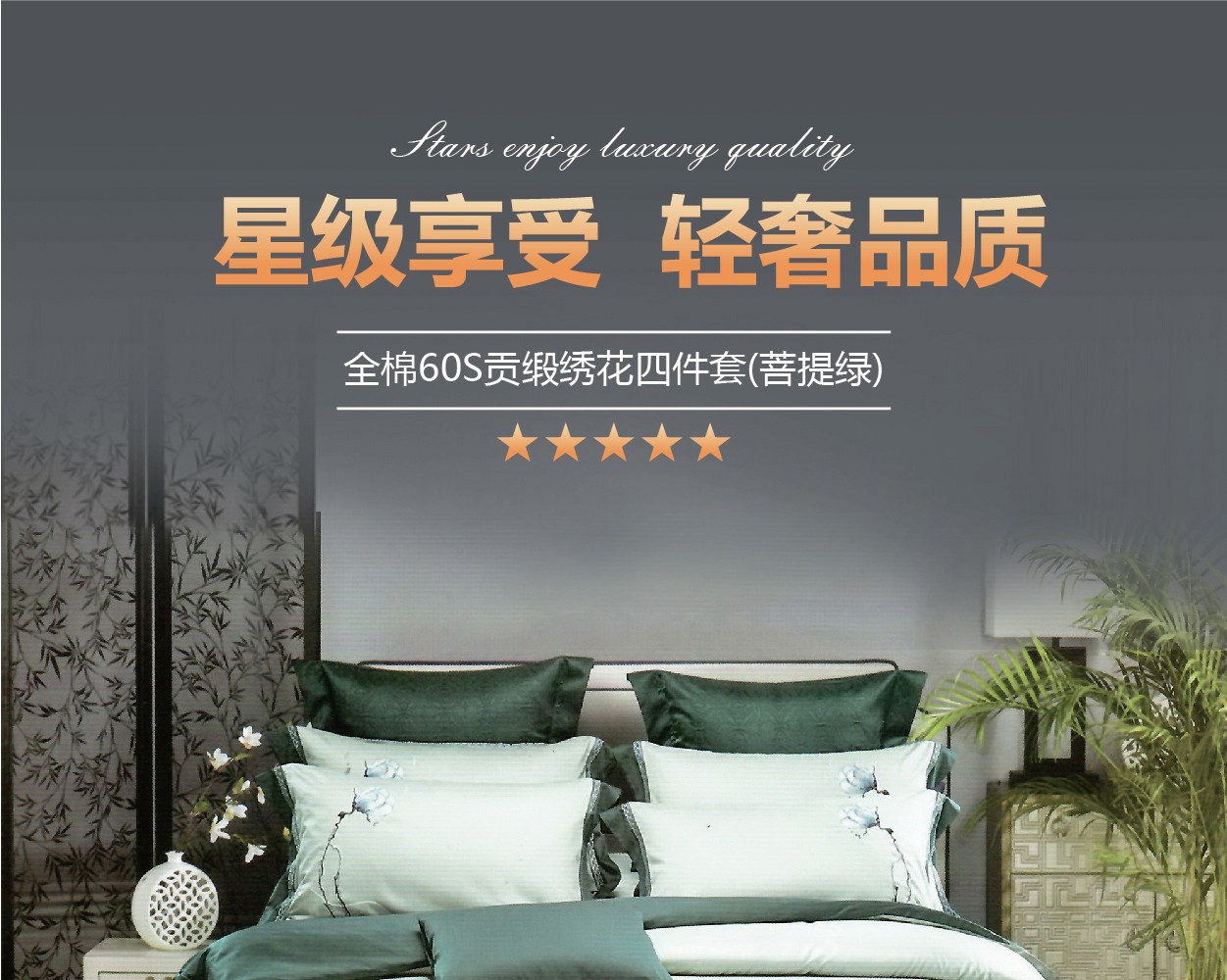 bbin宝盈60貢緞繡花四件套(菩提綠)