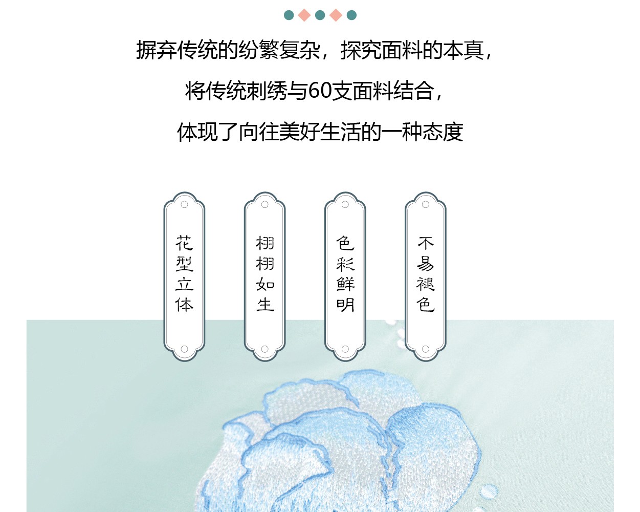 描述:新中式風格,緞紋織造,繡花溫馨高雅,舒適親膚,裸感極致體驗