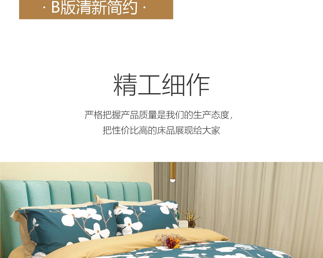 描述:100%純棉面料,優(yōu)質(zhì)環(huán)保印染工藝,無任何甲醛、增白劑、安全環(huán)保健康 全工序純棉精織,柔軟舒適,吸濕透氣,帶給您舒適的睡眠體驗。
