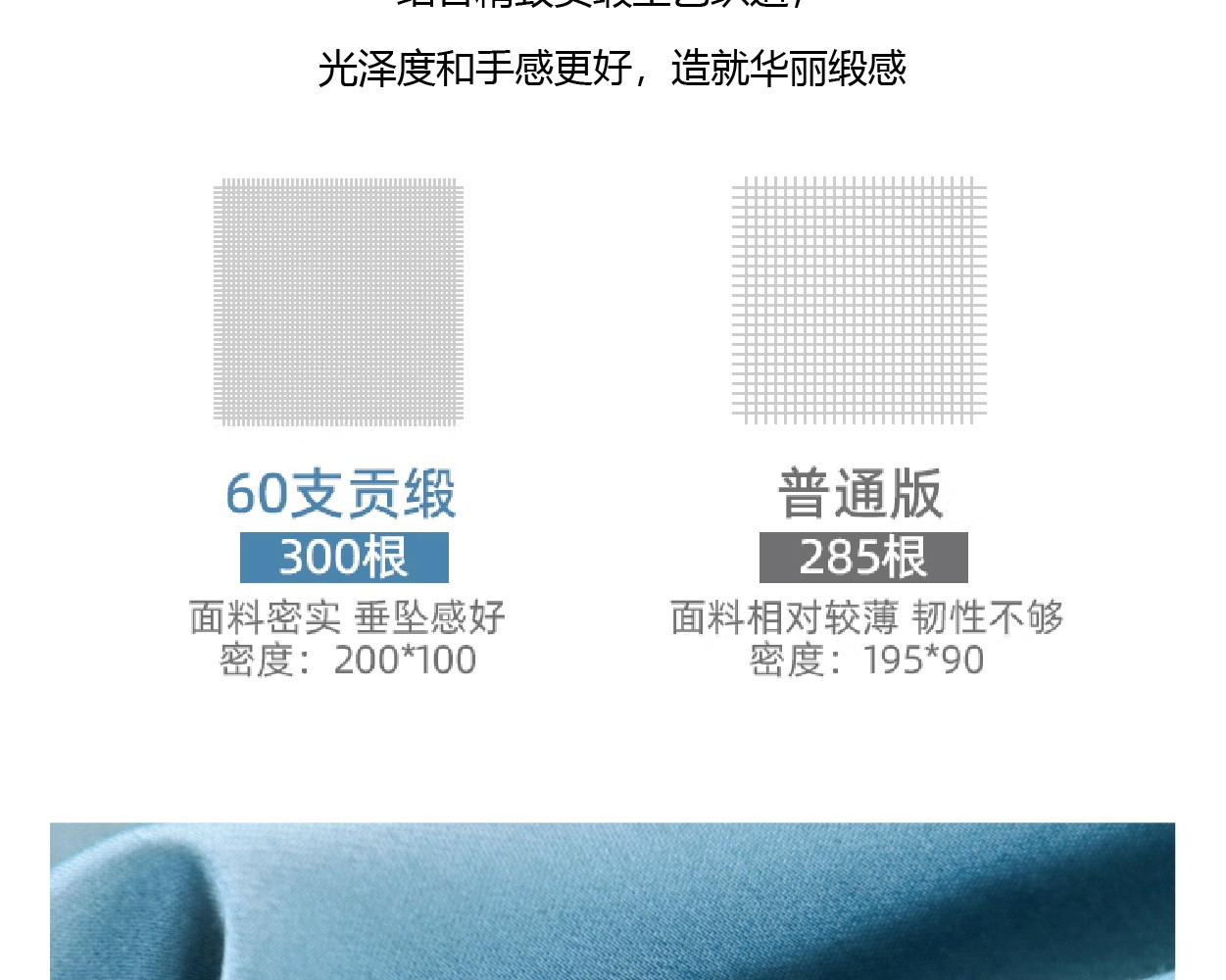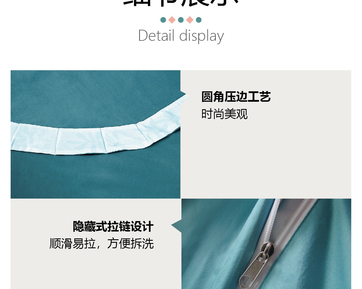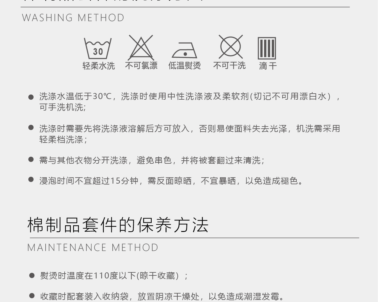 描述:60S天然純棉面料,如軟純粹,細(xì)膩親膚 織造面料的每一根纖維選取長(zhǎng)度均大于30mm,精梳去除粗纖維,無(wú)任何斷線起球。 安全環(huán)保印染工藝,讓你睡得更放心,帶給您舒適的睡眠體驗(yàn)