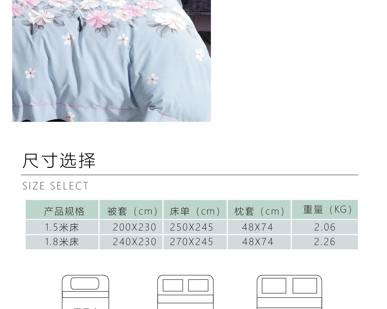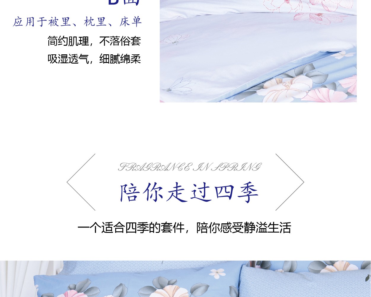 描述:優(yōu)質(zhì)環(huán)保印染工藝,無任何甲醛、增白劑、安全環(huán)保健康 全棉面料,吸濕透氣,滑爽親膚,帶給您舒適的睡眠體驗 織造面料的每-根纖維選取長度均大于30mm,精梳去除粗纖維,無任何斷線起球。