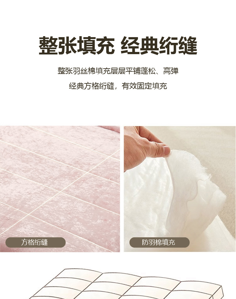 描述:采用雙層設(shè)計(jì),不壓身,完美鎖住溫度,優(yōu)質(zhì)面料柔軟親膚,固定填充不板結(jié)不變形。