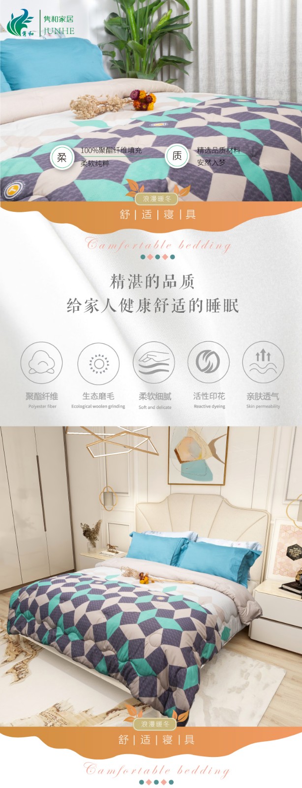 描述:100%聚酯纖維棉,大方設計,面料柔軟細膩、親膚透氣 優(yōu)質(zhì)環(huán)保印染工藝,無任何甲醉,增白劑,更健康,跟保暖,更實惠