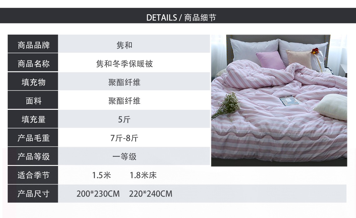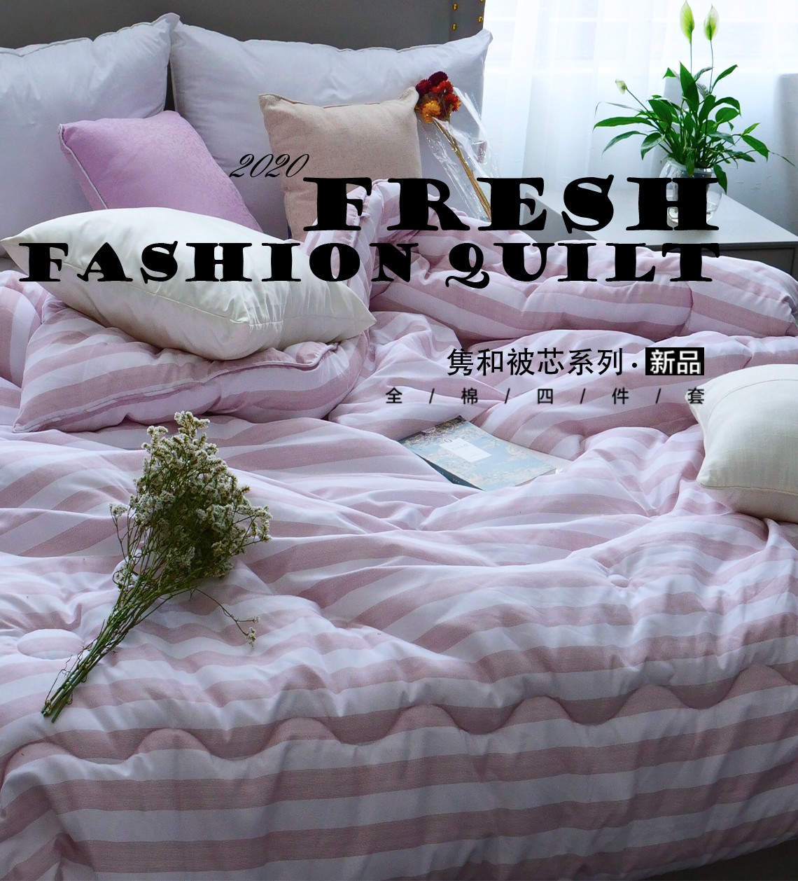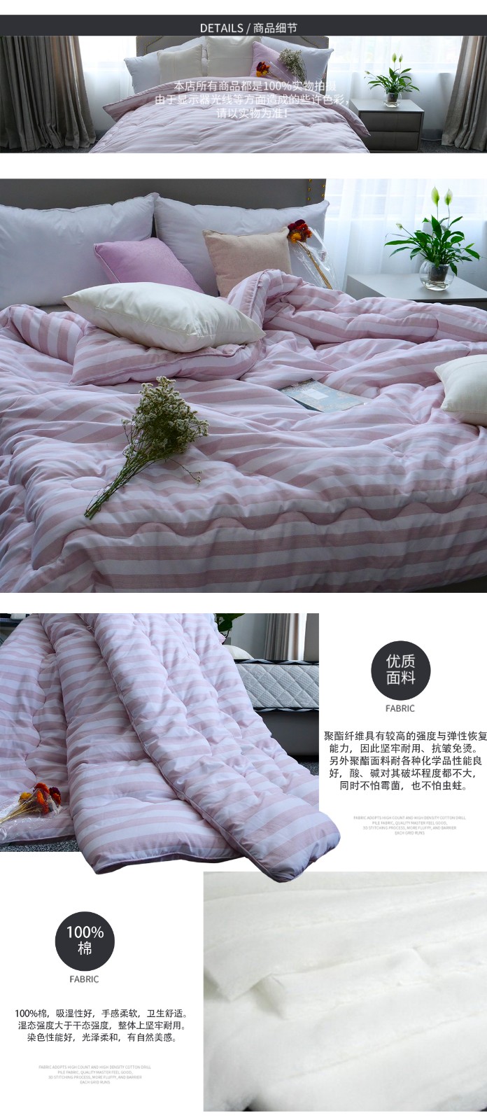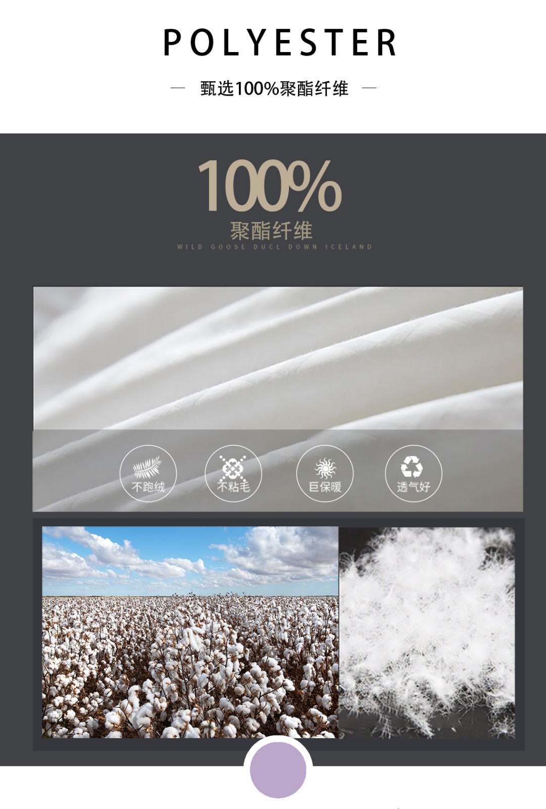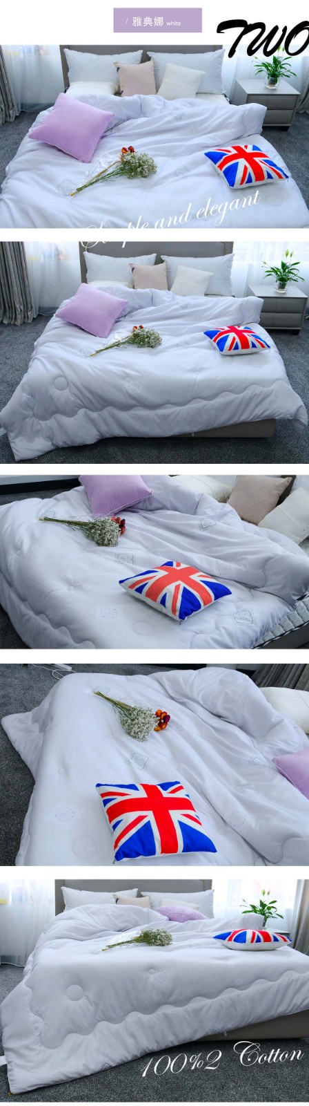 描述:獨特的抗菌面料,能有效防止細菌滋生,高品質(zhì)絎縫設備絎縫花型精致包邊工藝,成型棉結(jié)構(gòu),不會造成被芯里的棉揉團打結(jié),舒適柔滑保暖。