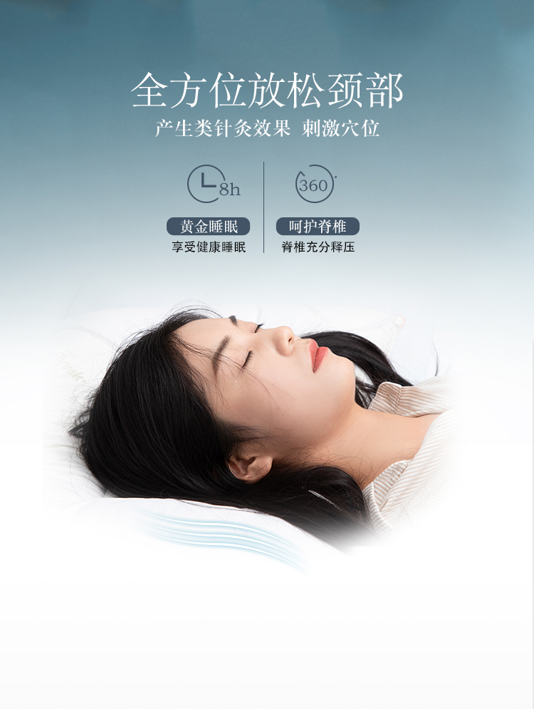 描述:專利產(chǎn)品,采用進(jìn)口特衛(wèi)強(qiáng)面料,透氣防螨、具有99%超強(qiáng)的防螨效果,內(nèi)部填充生物磁石,能刺激頸部穴位,呵護(hù)睡眠