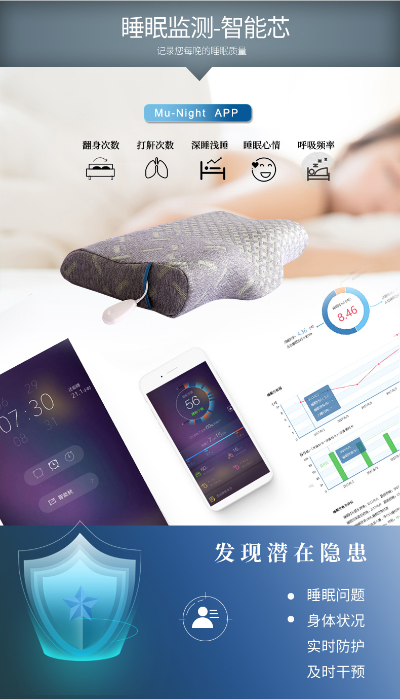 功能:1、學(xué)習(xí)娛樂2、負(fù)離子促眠3、生物磁4、震動(dòng)按摩5、慢回彈記憶填充棉6、石墨烯智能發(fā)熱片7、智能鬧鐘8、音頻助眠9、睡眠監(jiān)測10、防螨特衛(wèi)強(qiáng)