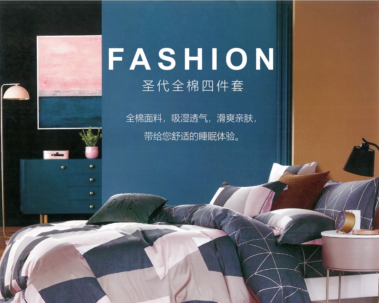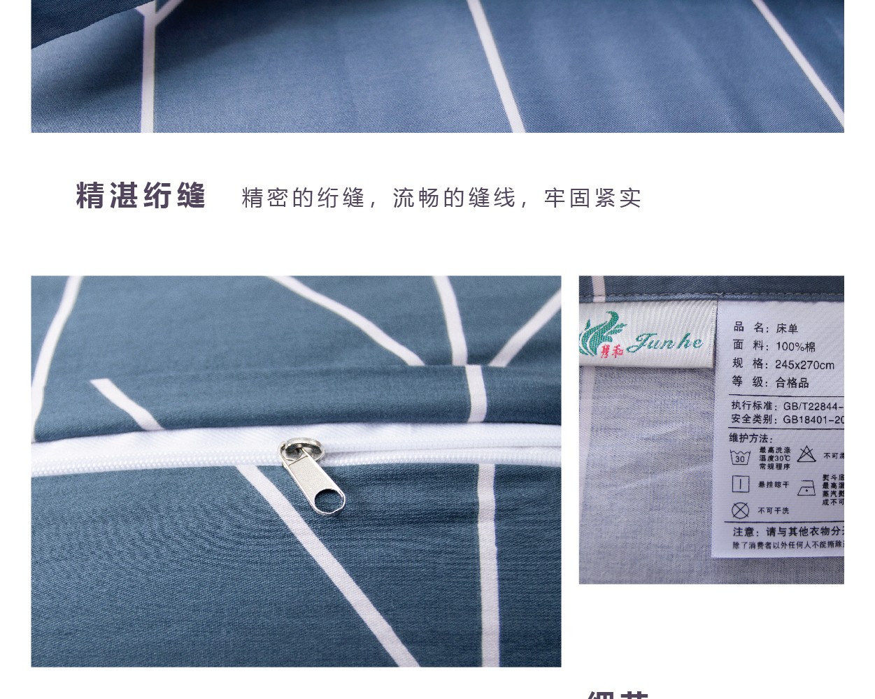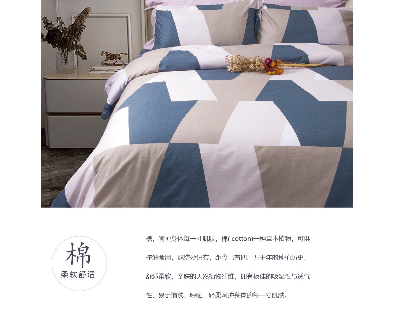 描述:100%純棉面料、活性印花工藝、不脫色不掉色、健康環(huán)保 全工序純棉精織,柔軟舒適,吸濕透氣,帶給您舒適的睡眠體驗。