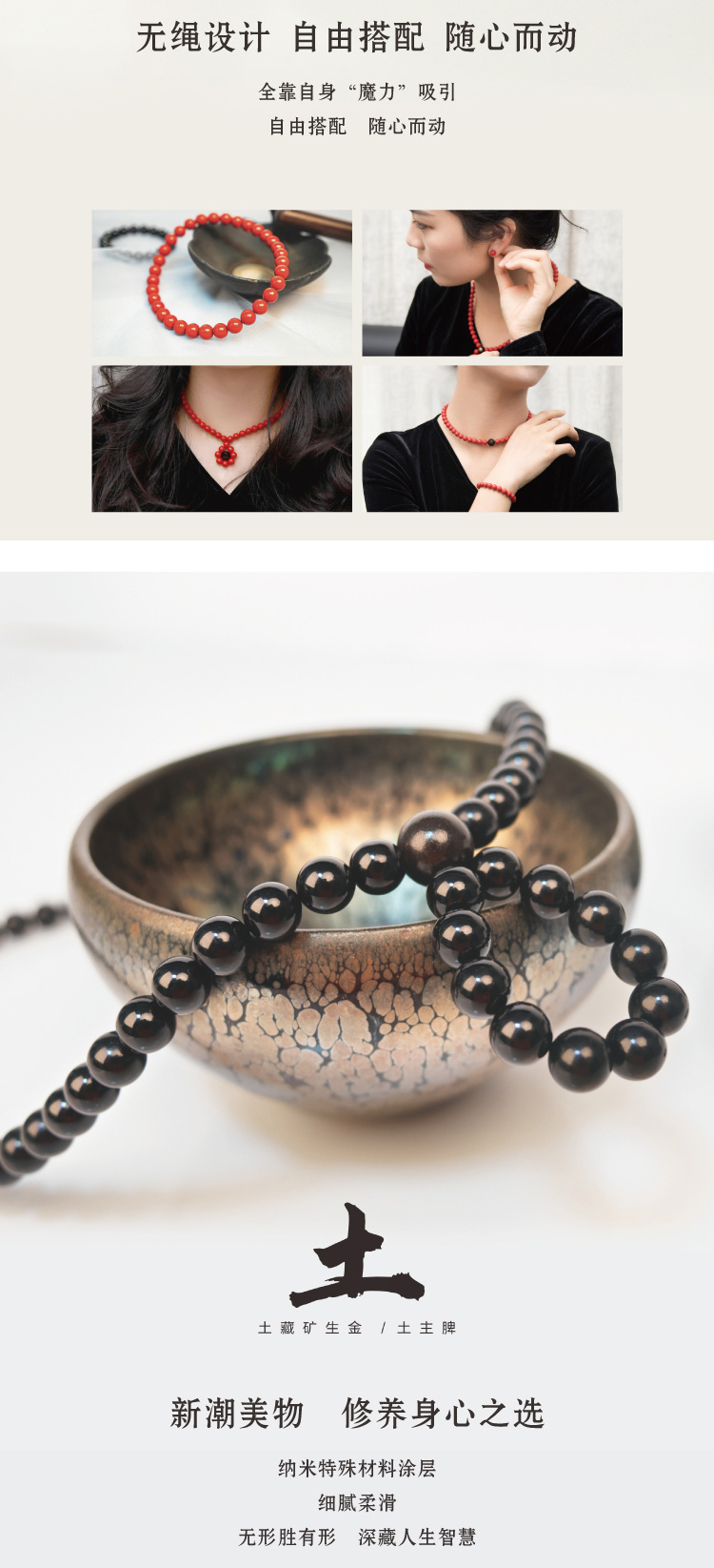 描述:采用珍貴稀土磁石,產生類磁灸效應,呵護健康,對應五行的無繩時尚設計,5種顏色任意選則,且可以隨意組合各種形狀