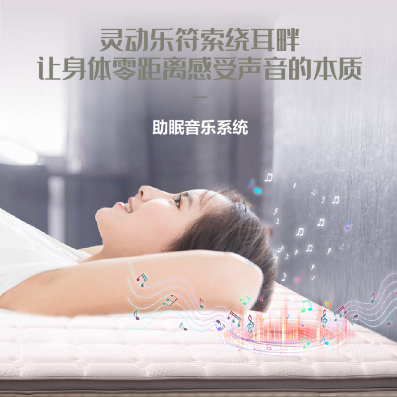 描述:床墊采用天然乳膠、高仿真全景聲音響、高密度回彈棉等15層復(fù)合材料結(jié)構(gòu)、內(nèi)置音樂睡眠系統(tǒng)、靈動樂符索饒耳畔讓身體零距離感受音律帶來的震動按摩體驗,立體環(huán)繞一鍵藍(lán)牙連接、零壓乳膠完美貼合身體曲線、讓你盡情享受好睡眠。
